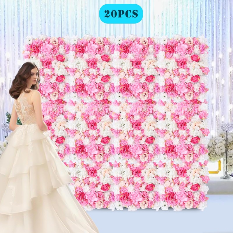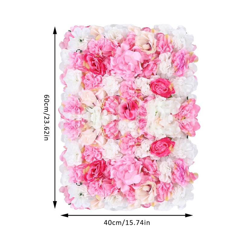 Flower Wall Panel Set, Artificial Wall Flower Backdrop 23.62''x15.74'' Inch Silk Hydrangea Rose Floral Panel, for Photo Background Home Party Wedding Backdrop Decoration(20pcs,Pink, Champagne, White)