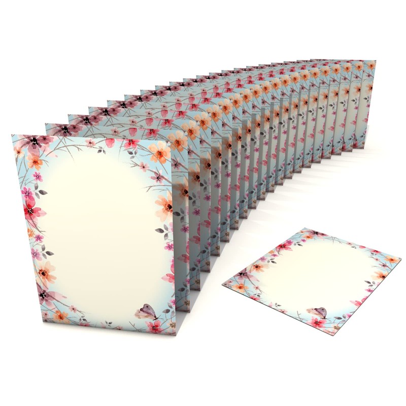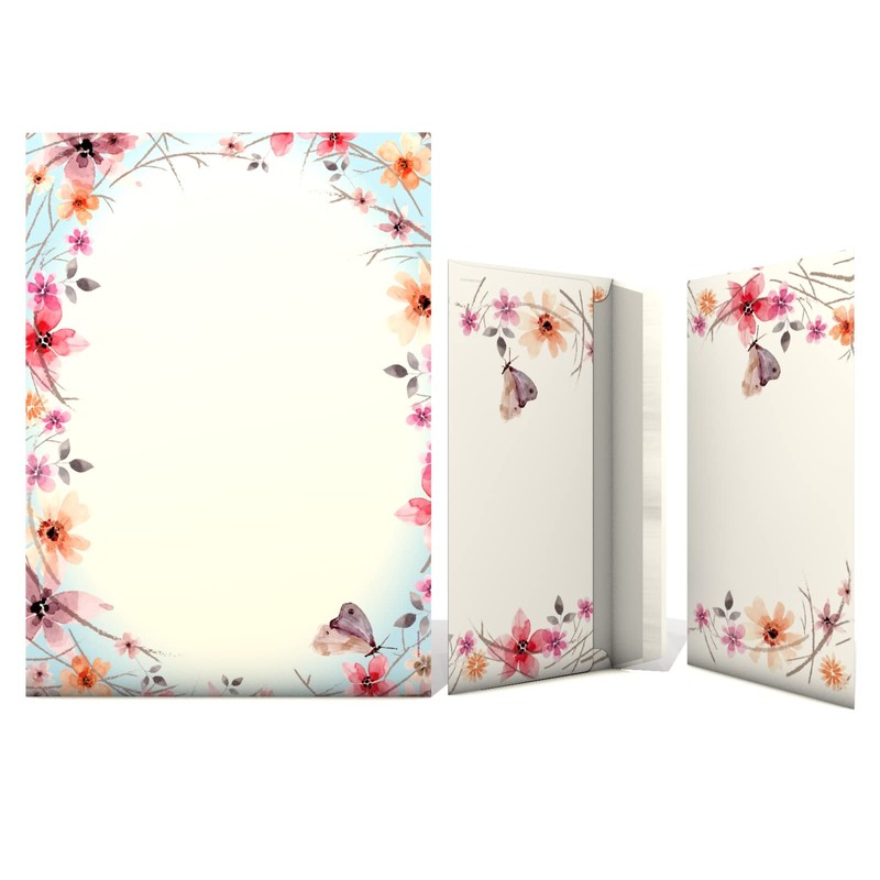 Flowers and Butterflies Spring Rain Letter Paper set with 50 sheets & 50 Envelopes