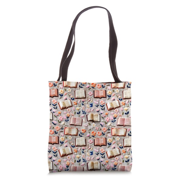 Flowers Books Floral Embroidered 3-D Boho Bookish Seamless Tote Bag