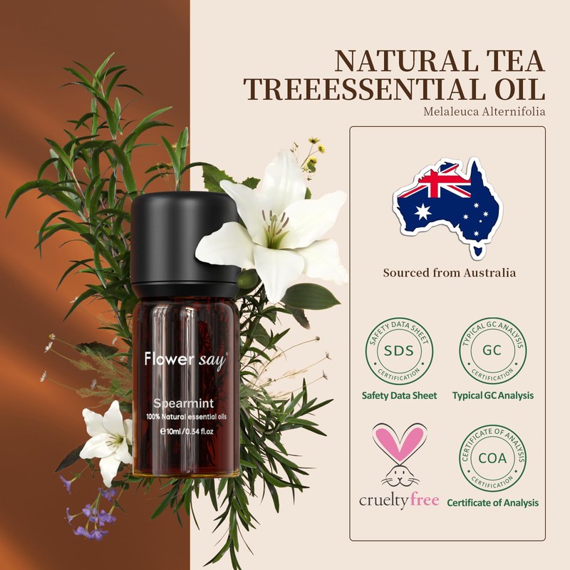 FLOWERSAY Spearmint Essential Oil 0.34Oz - 100% Pure Natural MAX Undiluted Premium Therapeutic Grade Essential Oils for Diffuser/Skin Care/Massage/Hair/Toenails