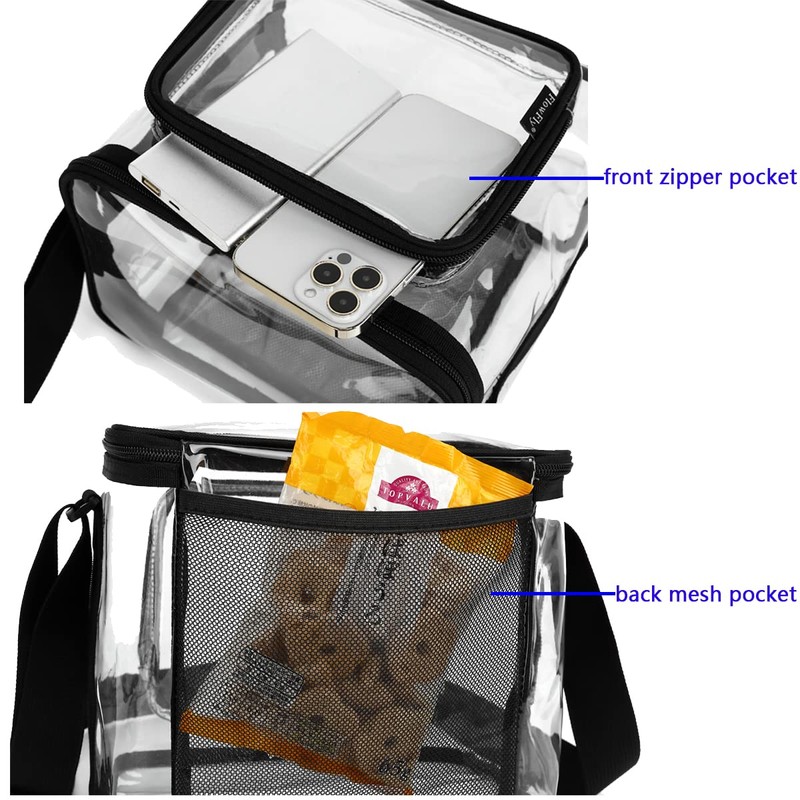 - ? Stadium Approved: Flowfly large clear lunch bag for women and men fully complies with the clear bag policy, adhering to the size limit of 12 x 12 x 6 inches. This makes it a suitable choice for venues such as stadiums, concerts, sports events, Festivals, and more. You can get through a security line easily and faster.