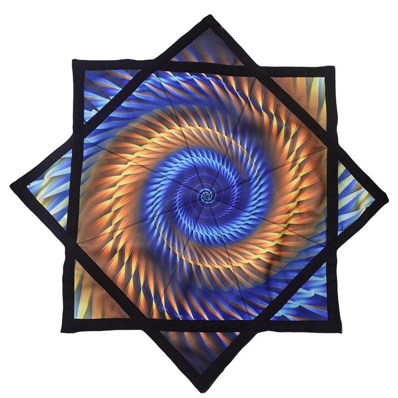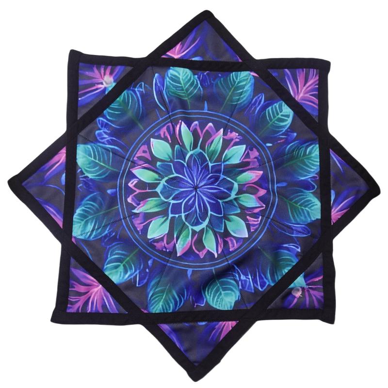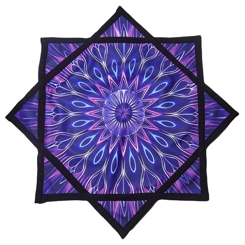 UV double-sided printing, using purple light to achieve fluorescent effect. Beautiful triangular needlework. soft and comfortable to the touch. The diagonal size is 67 cm and the net weight is 270 grams per piece.