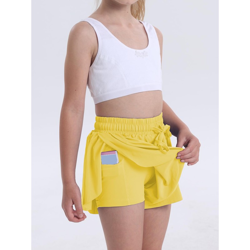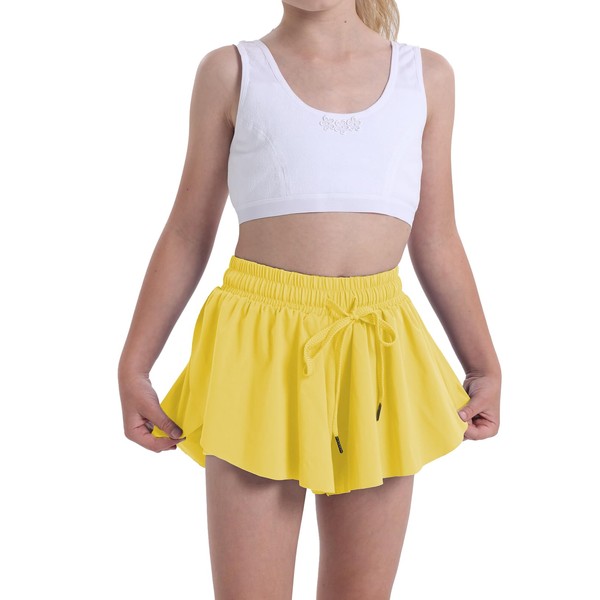 Flowy Shorts for Teen Girls Athletic Running Biker Shorts Youth Butterfly Shorts(LemonYellow-L)