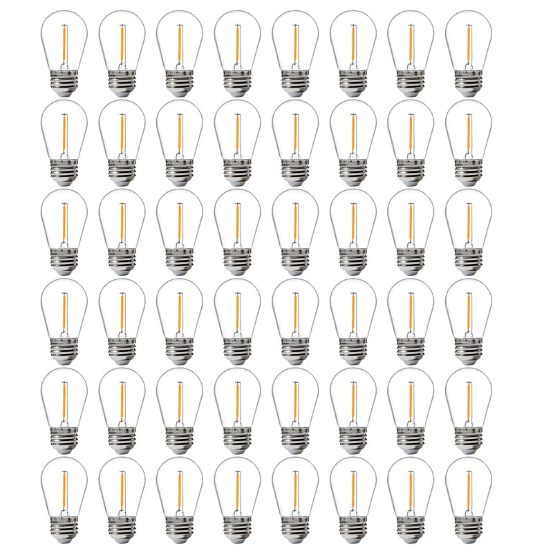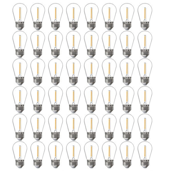 FLSNT 48 Pack LED S14 Replacement Light Bulbs for String Light, Waterproof Outdoor LED Bulbs, E26 Base, 2200K Warm White, Non-Dimmable
