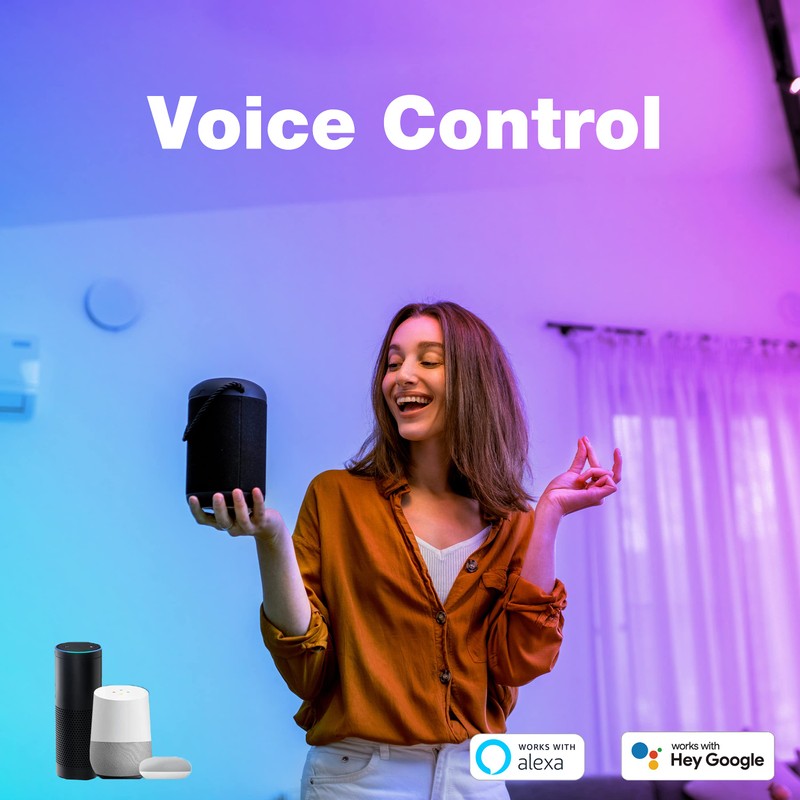 - Control de voz: controla tus bombillas inteligentes a través de tu voz para trabajar con Alexa y Google Home. Comando de voz simple para encender/apagar la luz o ajustar el brillo. Fácil de instalar. No necesita suscripción