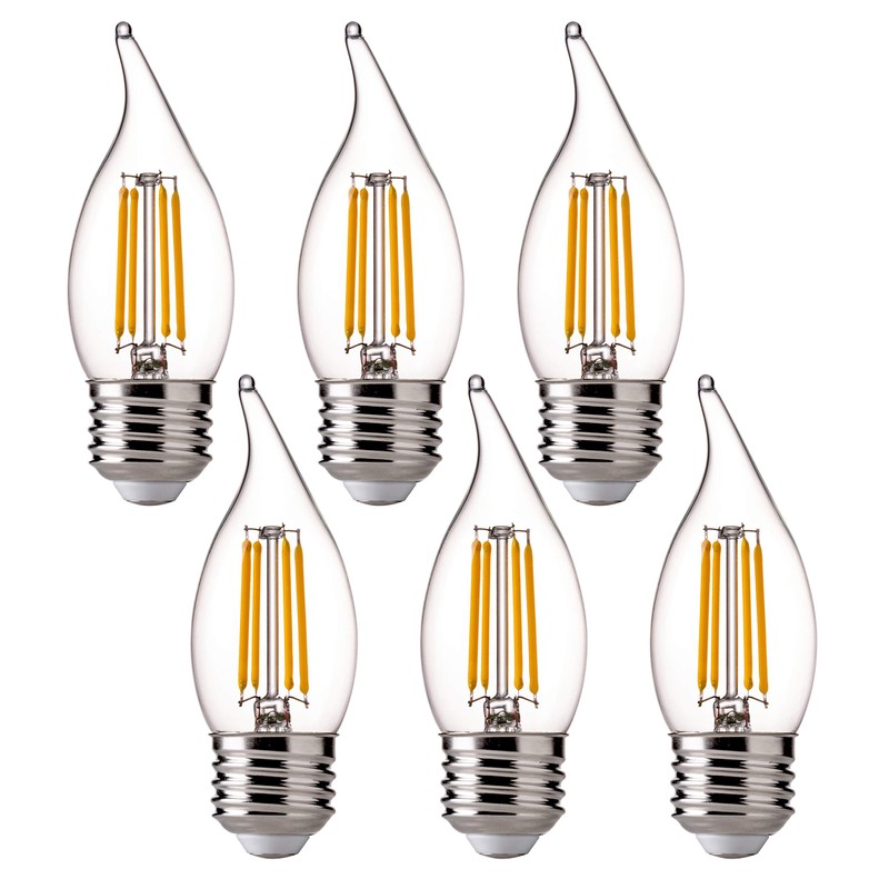 FLSNT LED 60 Watts Equivalent Light Bulbs, 4.5 Watts CA11 Dimmable Filament Clear LED Candelabra Bulbs, E26 Medium Base, 2700K Soft White, 6 Pack