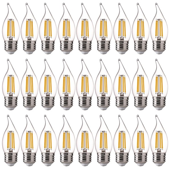 - Simple Installation: The LED chandelier bulbs can be installed into medium E26 screw base fixtures. Package Included: 24pcs/box