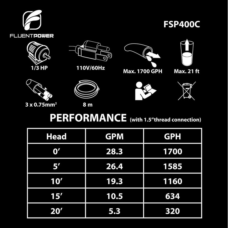 FLUENTPOWER 1/3 HP Electric Submersible Small Utility Drain Water Pump, without Float Switch, 3/4" Garden Hose Connector Included with Side Discharge for Clean Water