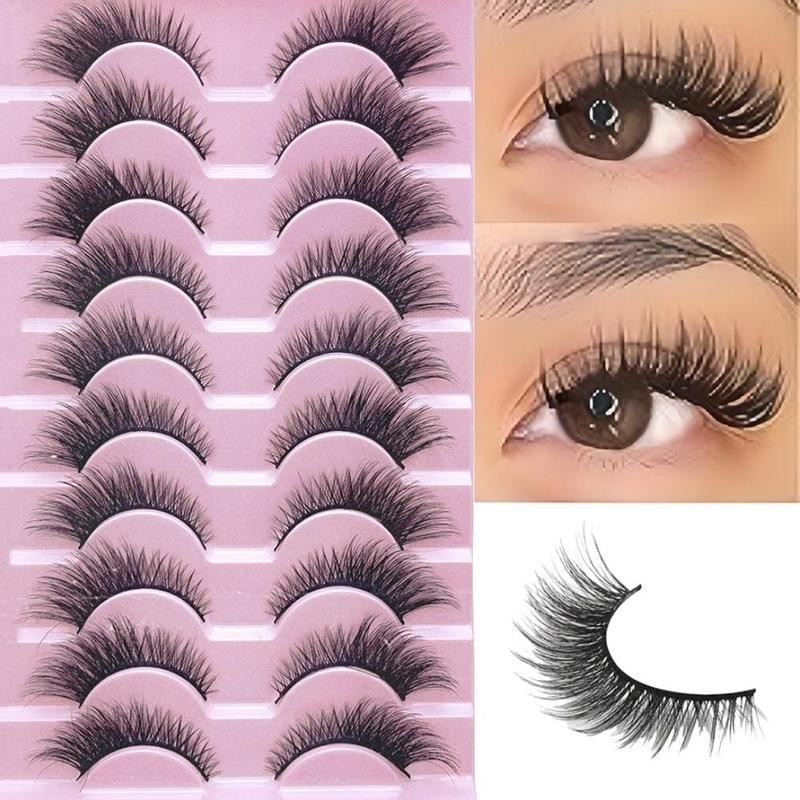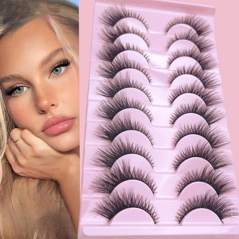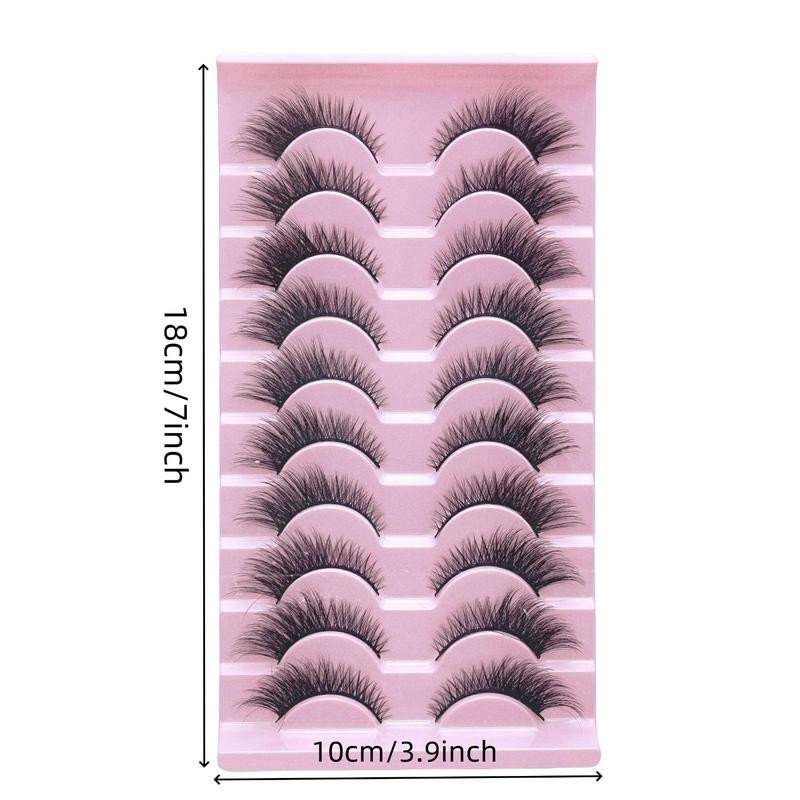 Fluffy Cross False Eyelashes, 10 Pairs Wispy Cat Eye Faux Lashes, Natural Curling Eye Makeup Strip Lashes, Volumized Fake Eyelash for Lashes Extensions