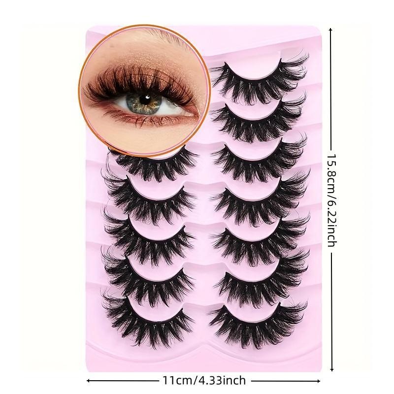 Fluffy False Eyelashes, 7 Pairs Wispy Cat Eye Look Faux Lashes, Natural Curling Eye Makeup Strip Lashes, Full Volume Eyelash for Lashes Extensions, Christmas Gift