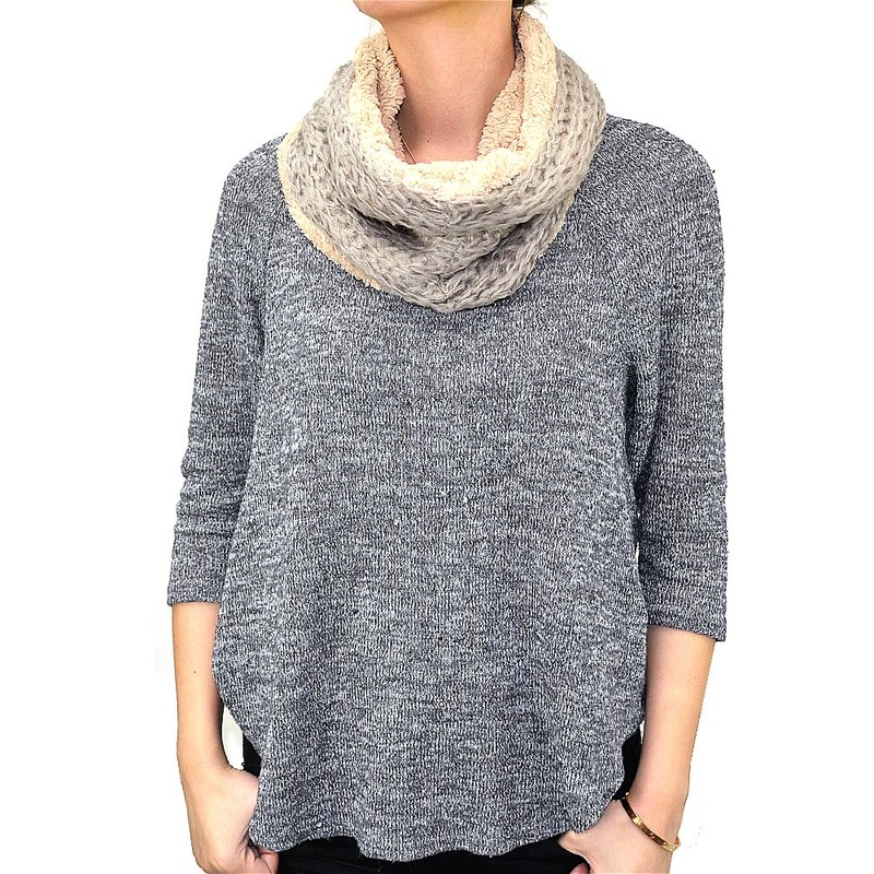 Fluffy Faux Fur & Crochet Double Layer Neck Scarf (Gray)