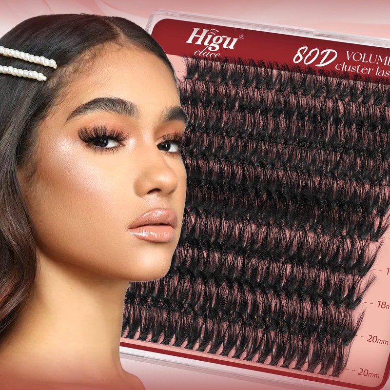 - 80D Fluffy Individual Eyelashes: Higu clace 80D eyelash clusters are volume and fluffy, suitable for all eye shapes, can enlarge eyes, effectively enhance the overall appearance, and highlight your charm and confidence. Long and thick 80D cluster eyelash make your eyes look dramatic, especially suitable for makeup lovers who like thicker eyelashes, allowing you to quickly create thicker eyelash extensions at home with less time and money.