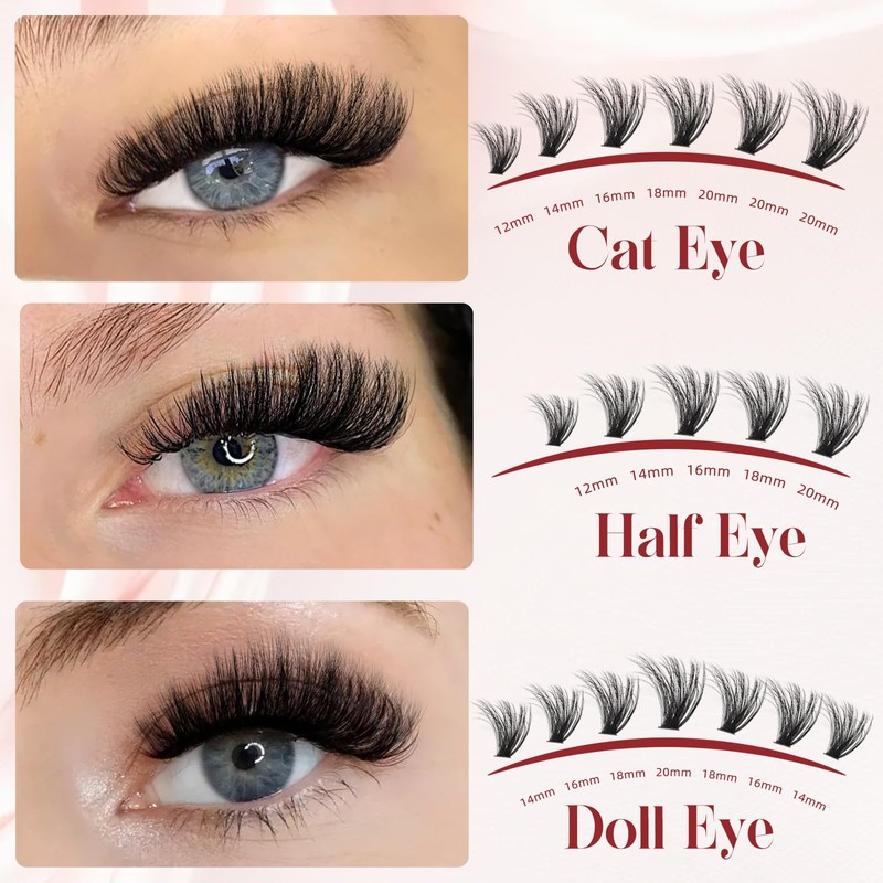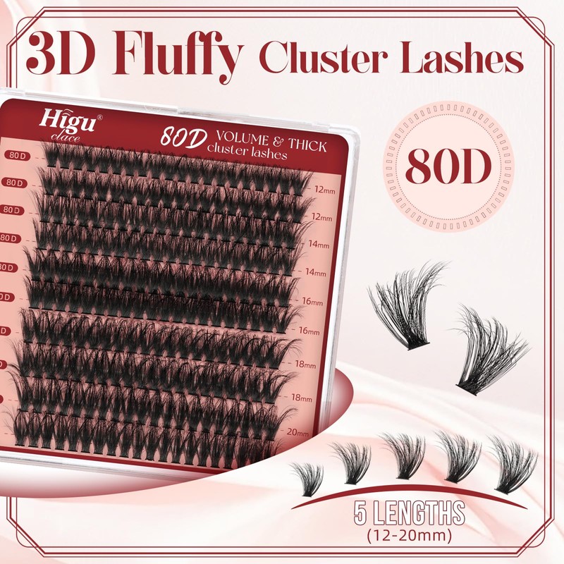 - Various Lengths & Style: Higu clace thick cluster lash have 5 lengths (12mm, 14mm, 16mm, 18mm, 20mm) for you to choose from, whether you use individual lashes for daily makeup or want to practice using cluster eyelashes, the 12-20mm mixed eye lashes clusters are enough for you to DIY and achieve the same eyelash effect as in the salon.