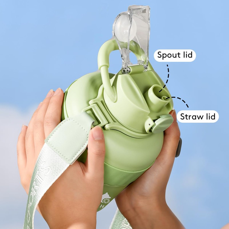 - TWO DRINKING WAYS IN ONE LID: Our water flask is equipped with 2 ways of drinking water. Its not only a straw lid, but also a spout lid. You can choose how you want to drink water anytime, anywhere without having to change the lid.