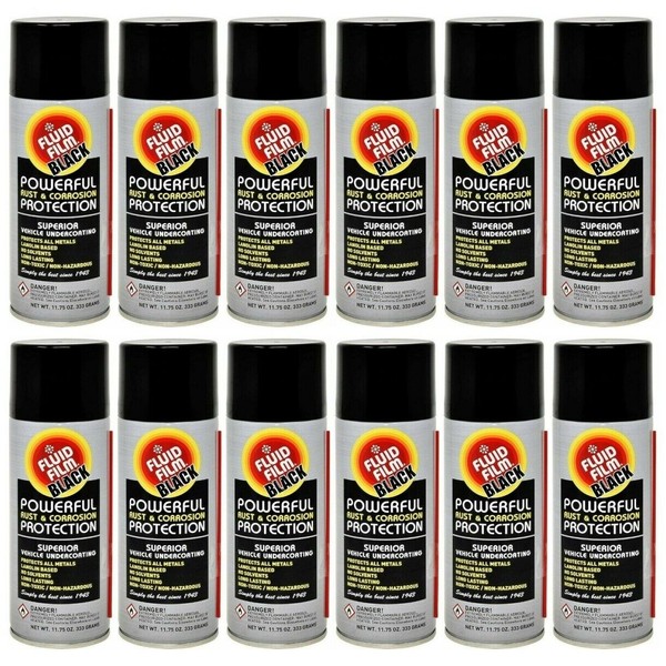 Fluid Film AS11B Undercoating Protection Rust Inhibitor Spray Can Black, 12 Pack