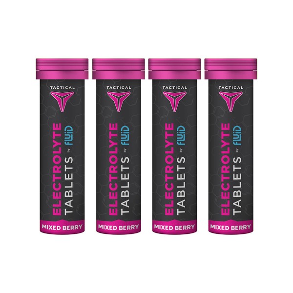 Fluid Tactical- Effervescent Hydration Tablets, Electrolyte Replacement & Dehydration Prevention, 4 Pack, 40 Servings (Mixed Berry)