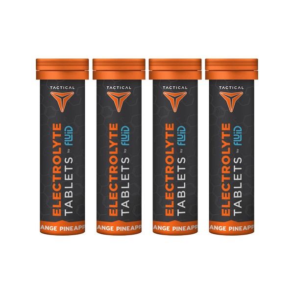 Fluid Tactical- Effervescent Hydration Tablets, Electrolyte Replacement & Dehydration Prevention, 4 Tubes (Orange Pineapple)