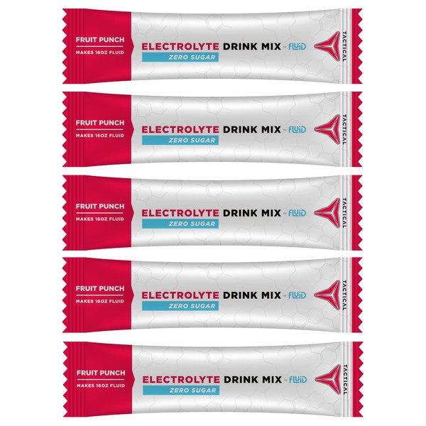 Fluid Tactical - Zero Sugar, Keto Electrolyte Powder, Hydration Packets, Made in USA (Fruit Punch, 25 Count)