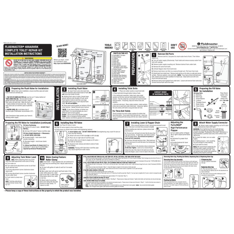 Fluidmaster 400ARHRKP10 PerforMAX Universal High Performance All in One Repair Kit for 2-Inch Flush Valve Toilets, Easy Install