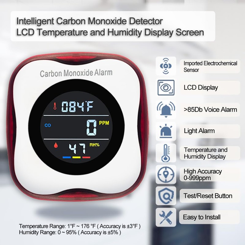 - New upgrade 3 in 1 - Monitor Current Temperature, Humidity, and Carbon Monoxide Concentration, Constantly Monitor the Surrounding Environment, and Provide Comprehensive Testing Information