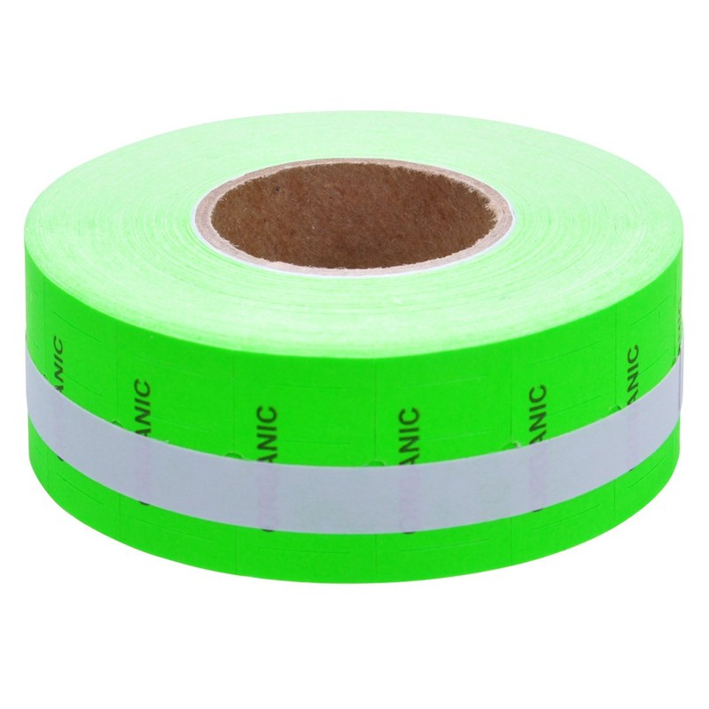 Fluorescent Green with Black "Organic" Labels to fit Towa® GS Series/Halmark/Century Price Guns 16 Pack (Free Ink roll Included)