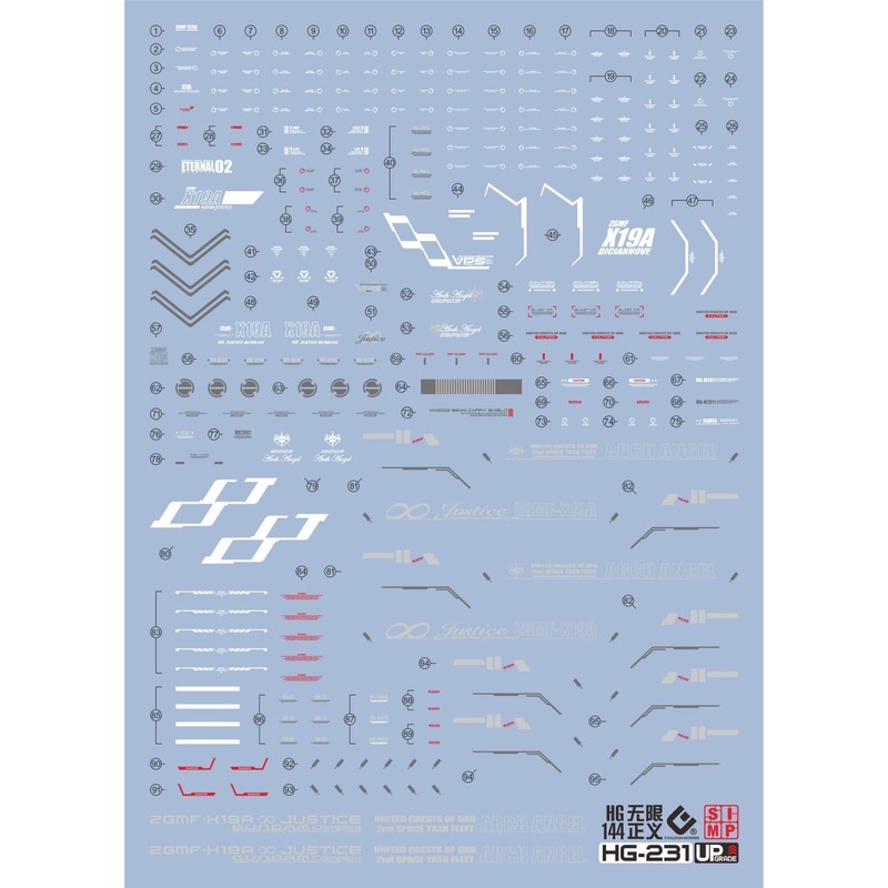 Fluorescent Water Transfer Decal for Robot MS Models, HG RG MG PG RE HiRM, Increased Detail, HGCE 1/144 Infinite Justice Gundam
