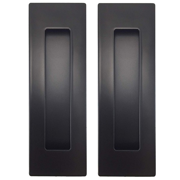 Flush Pull Barn Door Handle (2 Pack) 6" Black | No Sharp Edge | Screws Included