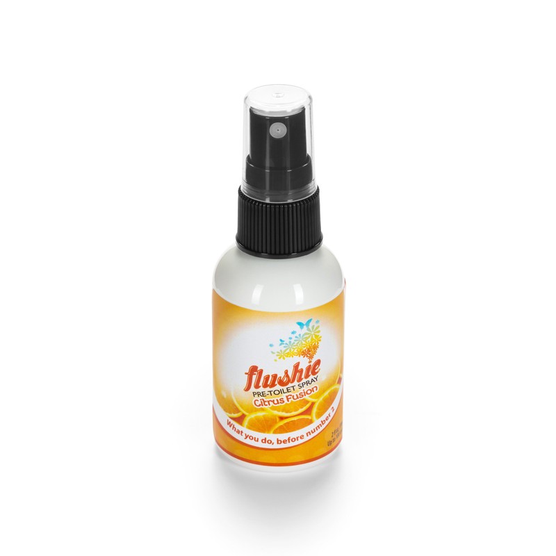 Flushie Pre-Toilet Sprays 2-Ounce Bottle, Citrus Fusion Scent, Bathroom Deodorizer, Poop Spray, Perfect for Travel 2oz