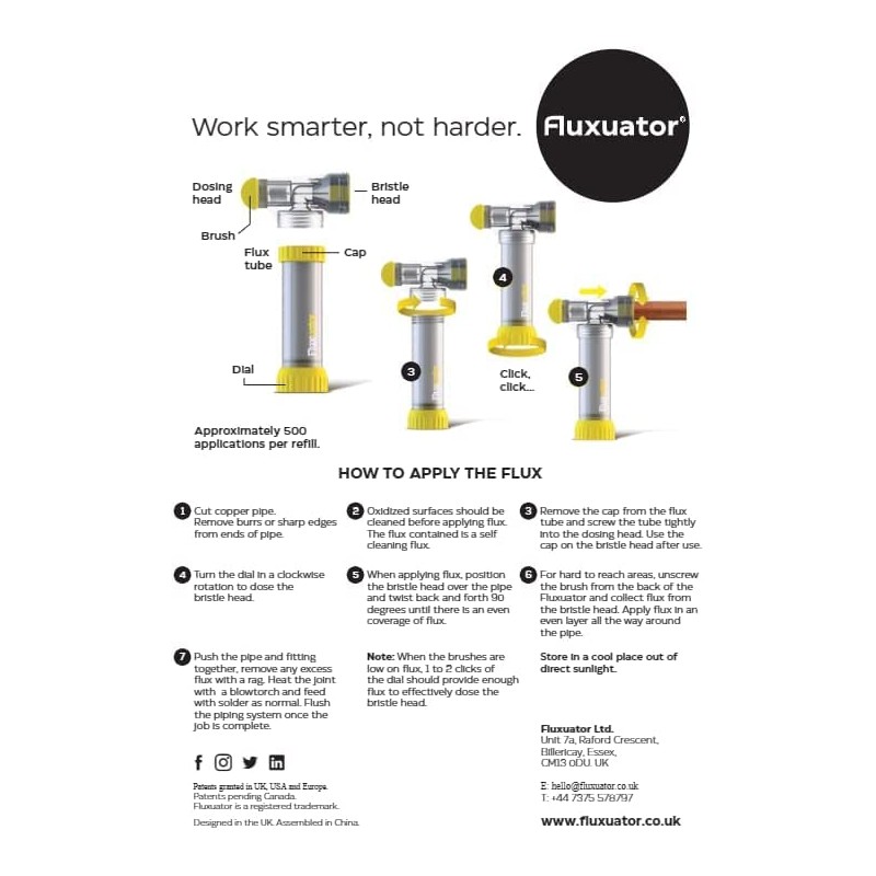 - WRAS approval. SELF-CLEANING FLUX with PH7 (NEUTRAL) thus more environmentally friendly and relatively harmless fumes when soldering.