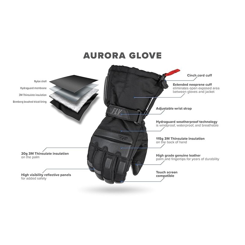 Fly Racing Aurora Waterproof Snow Glove Cold Weather Winter Gloves for Men & Women