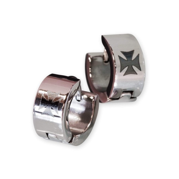 Fly Style® – 1 Pair – 5 mm Stainless Steel Black or Silver – Iron Cross Hoop Earrings, 16mm