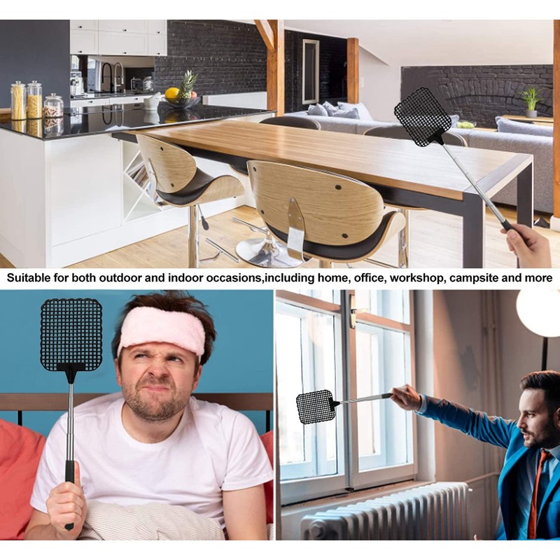 - Extendable fly swatter: The telescopic rod can be easily removed, comfortable to wear and handling. The extended telescopic rod makes it easier to hit mosquitoes and insects.