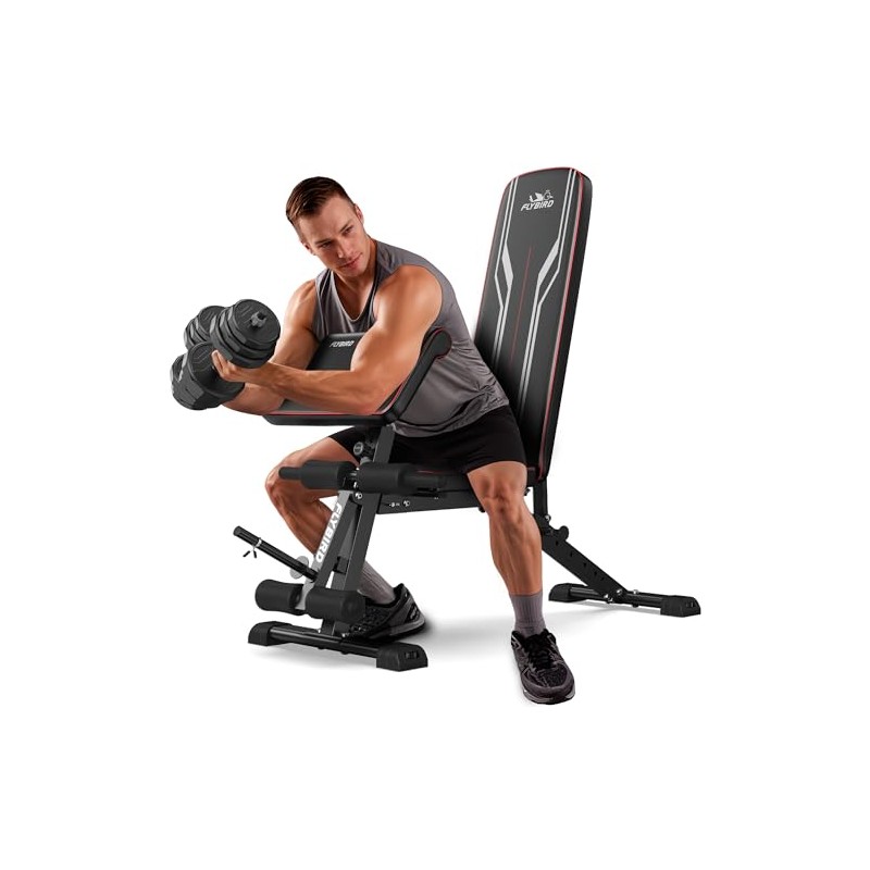 FLYBIRD Workout Bench with Leg Extension and Preacher Curl Pad, Foldable Weight Bchen for Home Gym, 800LBS Weight Capacity Exercise Bench for Full Body Strength Training