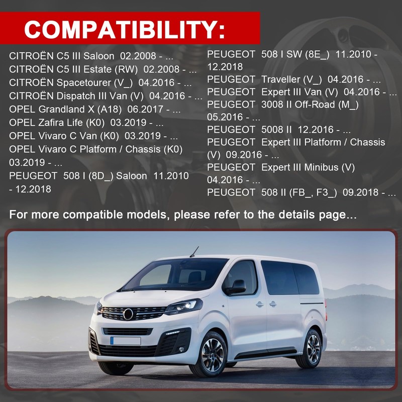 - * This Nox sensor is suitable for the following models: 2008 1.6 BlueHDi; 208 1.6 BlueHDi 100; 3008 (OU) ; 3008 MK2 (M) ; 308 MK2 ; 5008 Mk1 ; 5008 Mk2 ; 508 ; 508 ; 508 08SW; 8SW; 2.0 BlueHDi 150 / 1.6 BlueHDi 115 / 1.6 BlueHDi 95 / 2.0 BlueHDi 180; Partner (B9) 1.6 HDi / BlueHDi 75 ; Partner Tipi (B9) 1.6 BlueHDi 120; Traveller 2. BlueHDi180 cm