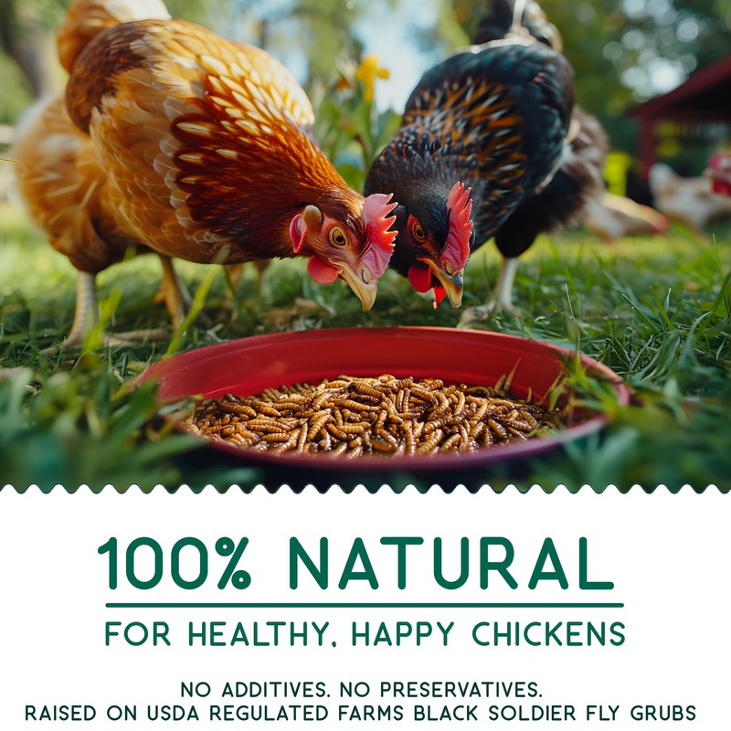 - High Calcium Chicken Treats:These black soldier fly larvae provides more calcium than mealworms; robust protein content (36 to 42 percent) and beneficial fats ensure healthy birds