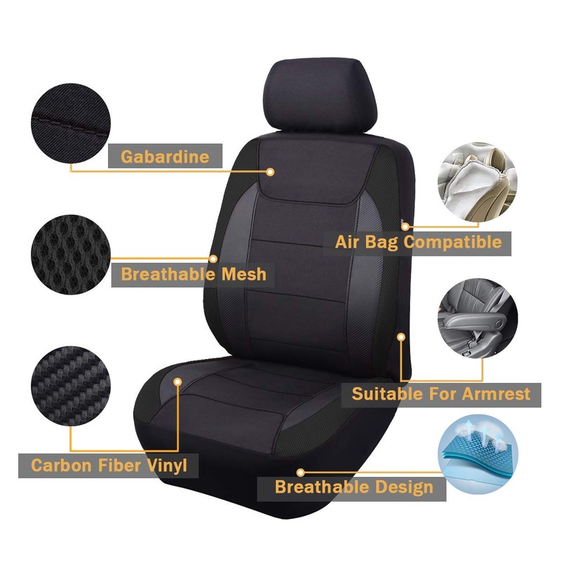 Flying Banner Gabardine Mesh Front Car Seat Covers Airbag Compatible Protector Universal for Most Car Truck Vans SUVs (Black)