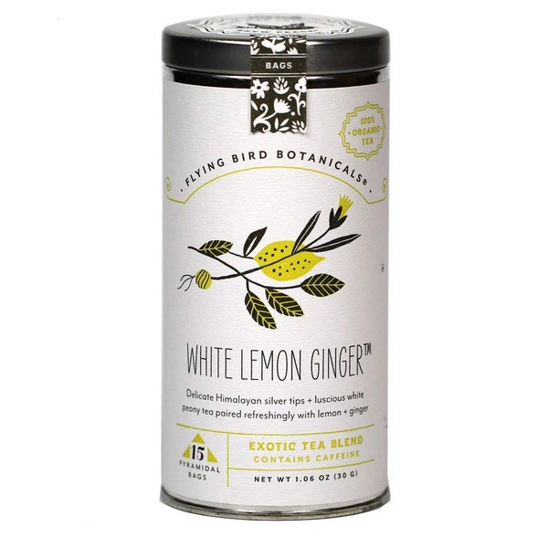 Flying Bird Botanicals, Tea White Lemon Ginger Organic, 15 Count