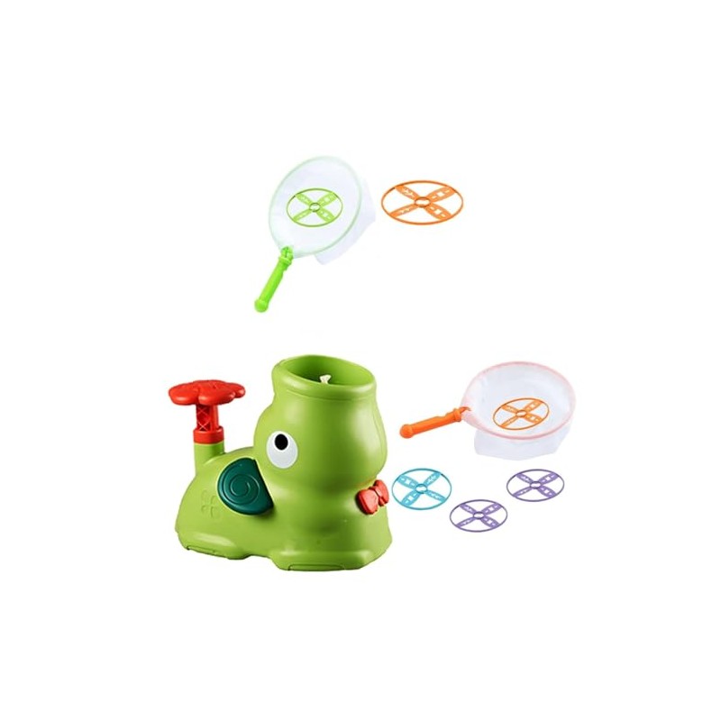 - 【Safe and Durable Design】Flywheel transmitter set includes 1 transmitter, 12 color flywheels, 2 catch nets, and 2 bow caps. Made of quality material, durable and safe. We recommend wearing a mask when playing