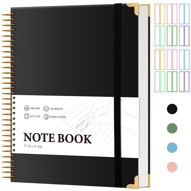 - Hardcover Notebook with Corner Protectors: The spiral notebook has a durable and water-resistant hard cover. It can easily be held in your hand for writing without table. And the gold corner protectors add a nice touch and keep from getting scuffed. Hold up well to frequent transfers in and out of bags, briefcases, and cars. Super sturdy for work and school use!