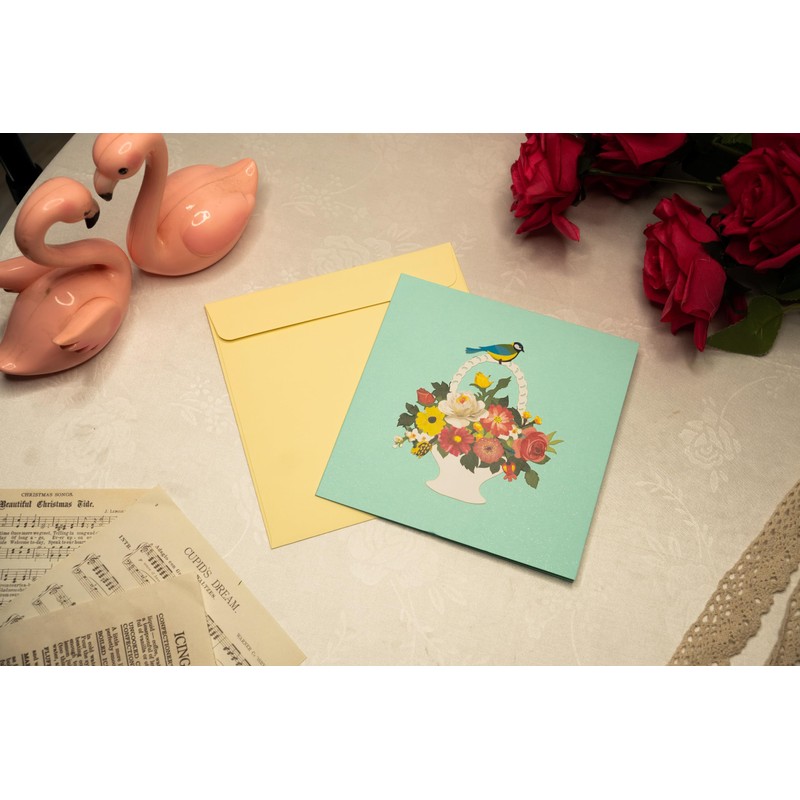 Flying Meow Flower Basket Greetings 3D Pop-Up Card - Handcrafted Greeting Card for the Blossoming Season (Flower Basket)