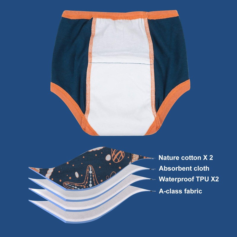 - [Super Comfortable Cotton]: Our potty training underwear are made from natural and safe 100% cotton. Outer layer is 100% cotton. Inner layers are cotton+muslin+TPU to ensure extra softness, absorbency and breathability. It is cloud-soft to wear and kind to sensitive skin, helping to prevent diaper rash.
