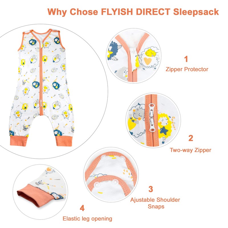 4)-Two-Way Zip and Zip Protector★: The sleeping bag baby summer has a smooth 2-way inverted zip for easy nappy changes and toileting. The zipper stopper keeps the baby’s skin from scratching.