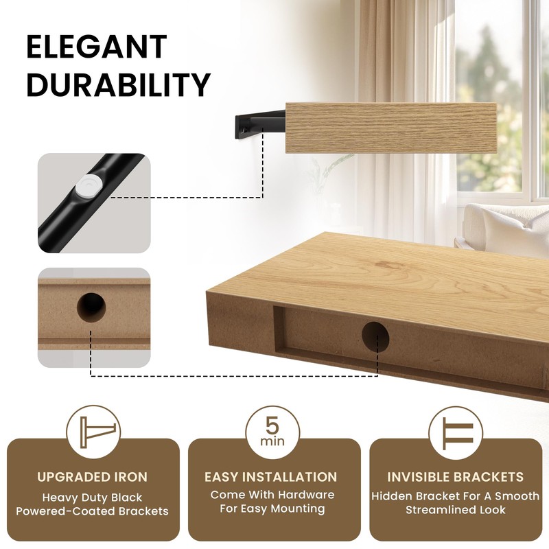 - Hassle-Free Installation: These compact wall shelves come pre-drilled and include all necessary mounting hardware and step-by-step instructions. You'll have them up in just minutes—transforming your space with a stylish, functional update in no time