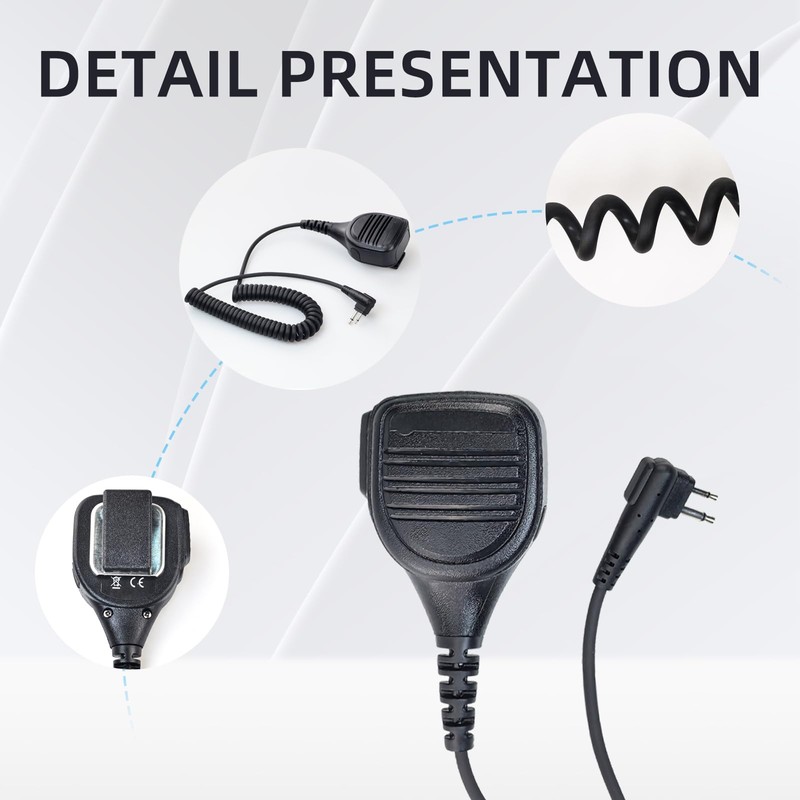 - Double M-Connectors Design: This design makes the connection between hand microphone and walkie-talkie more solid, the signal transmission is more stable and reliable, which can effectively reduce the occurrence of signal loss and interference, and ensure that in a variety of environments are able to maintain a clear communication.