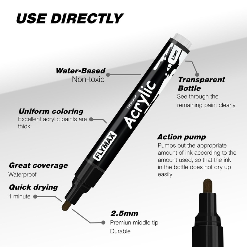 • 【Quality】Crafted with high-quality water-based and acrylic ink, these acrylic paint marker pens feature a fine tip for smooth, precise application on any surface. They dry quickly and are fade-resistant, waterproof, and UV-resistant, ensuring your artwork retains its brilliance over time.