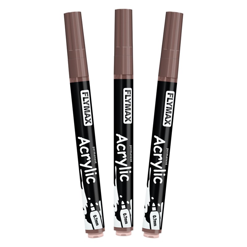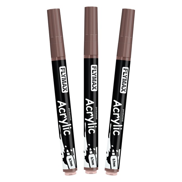 FLYMAX Brown Marker Paint Pens - Permanent Marker Pens Brown Acrylic Paint Water-Based 0.7mm Fine Tip Waterproof Quick-Drying (3 in 1Pack)