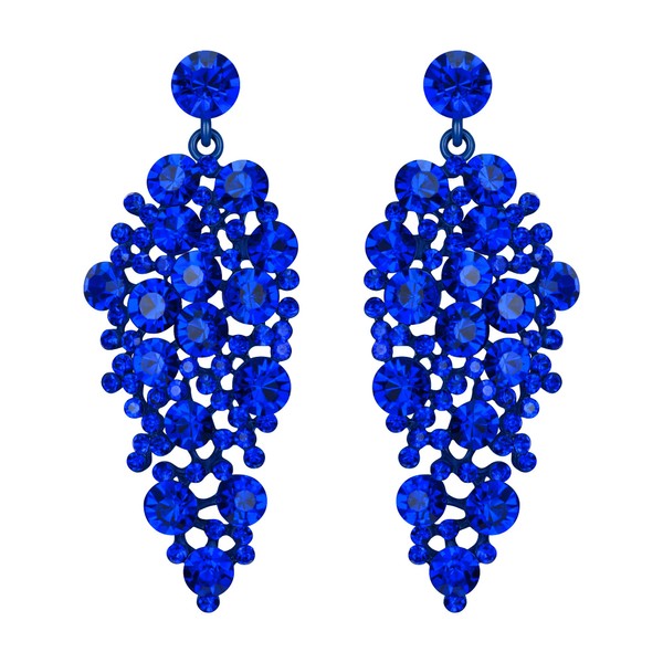 Flyonce Bridal Wedding Earrings for Brides Bridesmaid, Sparkly Rhinestone Drop Dangle Chandelier Earrings for Women Blue