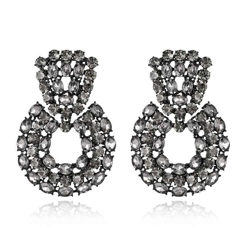 Flyonce Statement Drop Earrings, Grey Rhinestone Crystal Geometric Earrings for Women, Wedding Party Round Hoop Dangle for Brides Bridal