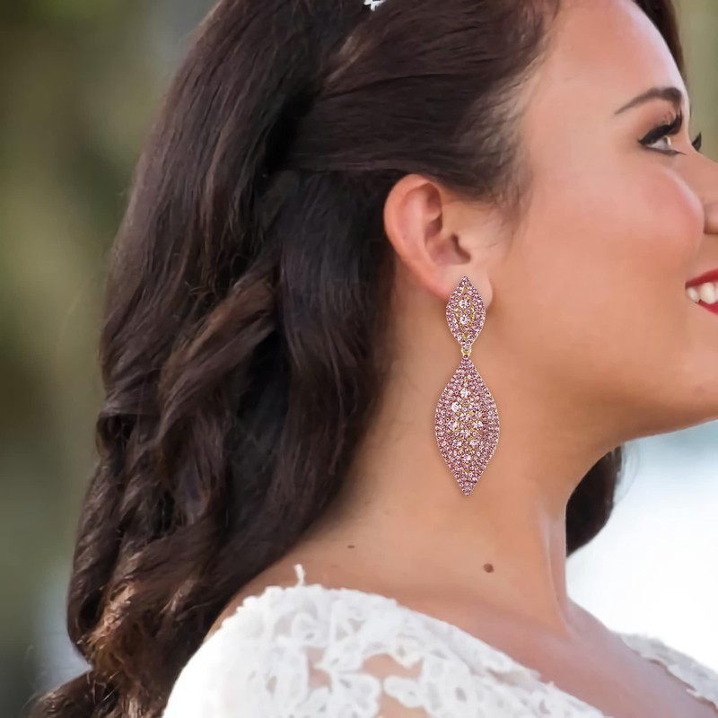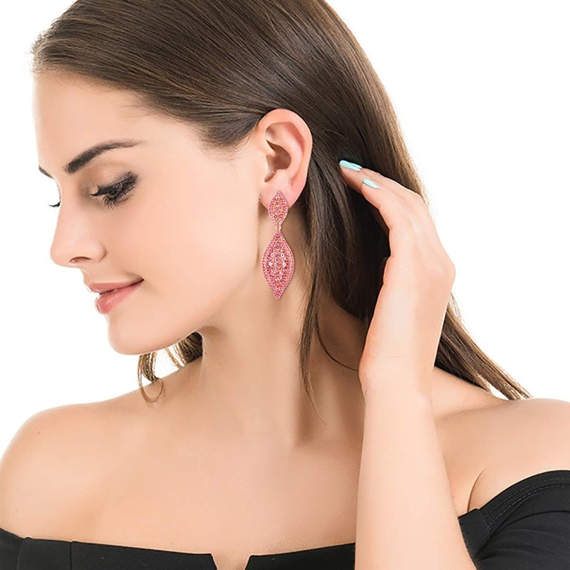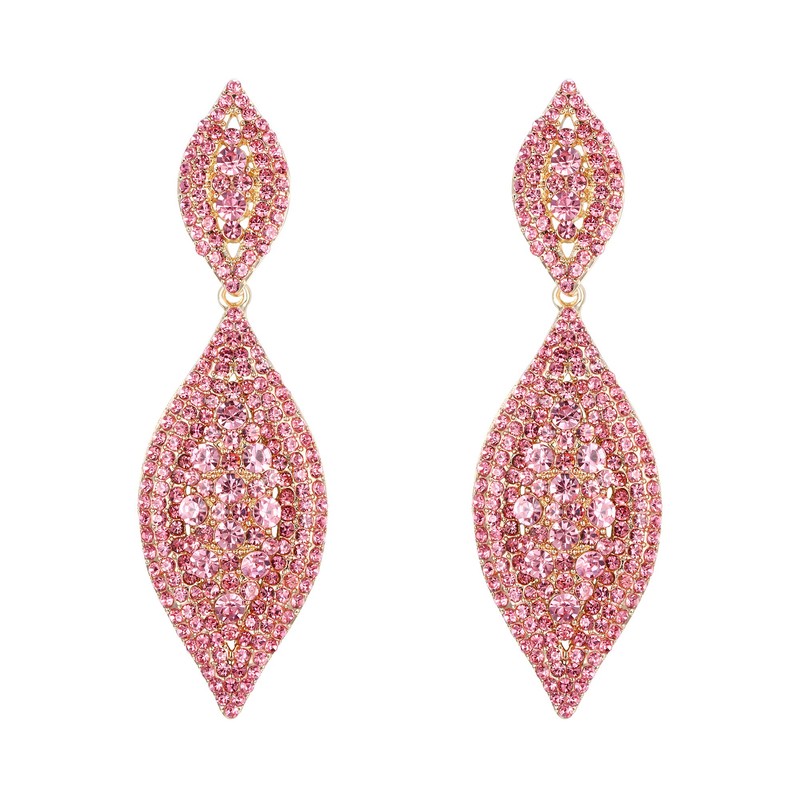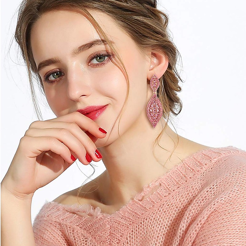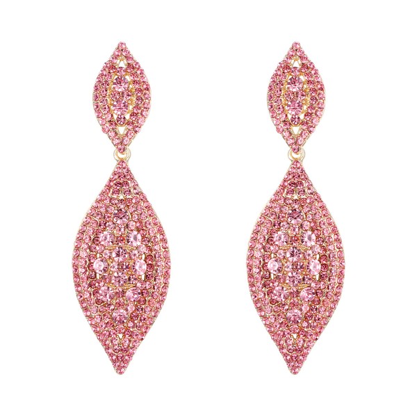 Flyonce Women's Austrian Crystal Wedding Bridal Charm 2 Leaf Drop Dangle Earrings Light Pink Gold-Tone