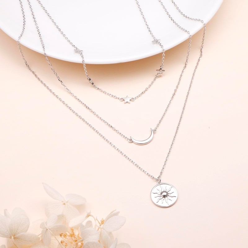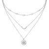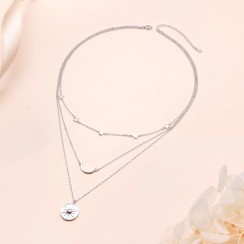 Flyow S925 Sterling Silver Layered Necklaces for Women, Multi 3 Layer Sun Moon Stars Boho Triple Choker Pendant Necklace Jewerly Gift for Women